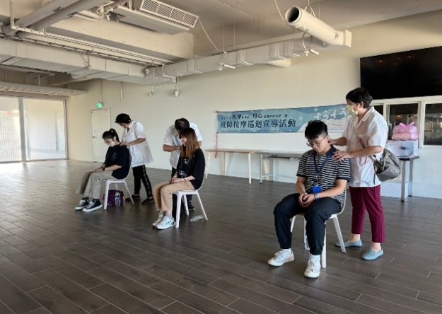 並提高員工對弱勢團體的關注。同時,10月15日公司安排「視障按摩巡迴體驗活動」,邀請3位視障按摩師進廠提供肩頸按摩服務,共計20位同仁參與。