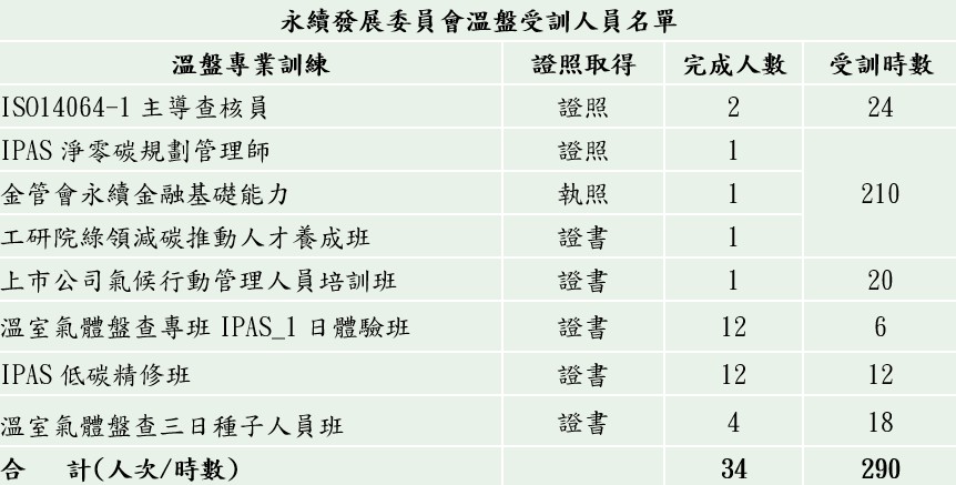 開行動計畫,以達成減量目標。此外,本公司也持續進行再生能源設備建置,逐步提升再生能源使用比例,以達 RE100 之能源目標。